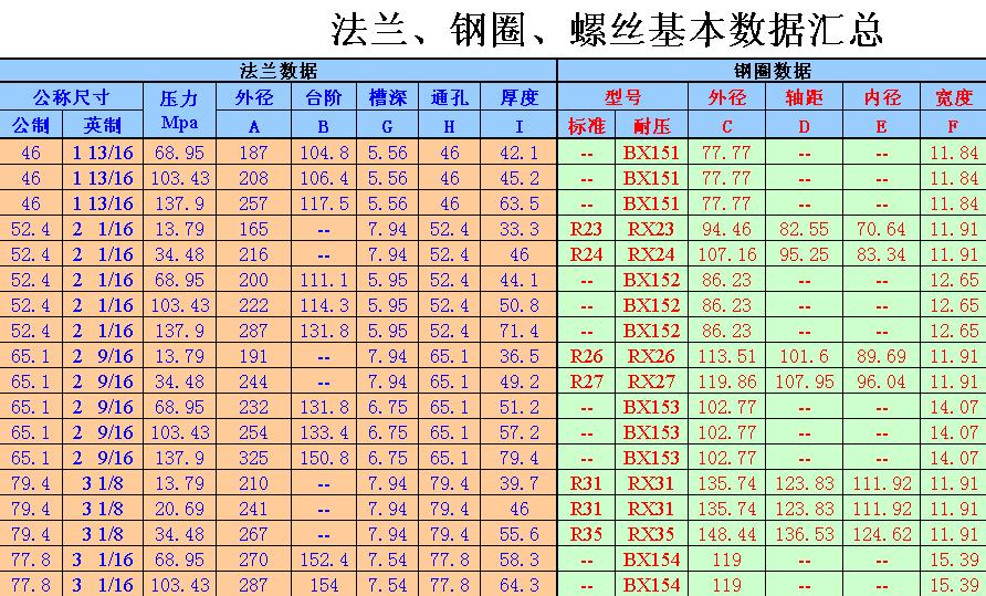 法蘭、鋼圈、螺絲基本數(shù)據(jù)匯總