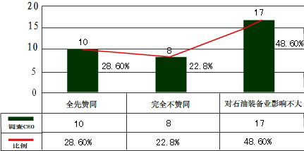 結論:48.60%的高管認為金融危機對石油裝備行業影響不大,28.60%的人則完全贊同這一觀點。