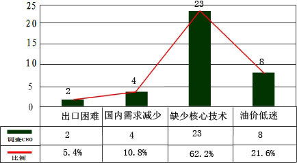 2、62.20%的高管認為阻礙中國石油裝備行業發展的最關鍵問題是缺少核心技術;