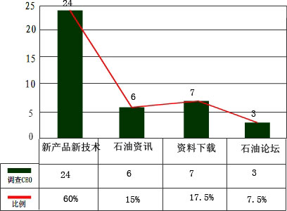通過調查,發現對“振威石油網”的新產品新技術欄目關注度最大, 而石油論壇則相對較少。還有一部分是未深入接觸該門戶,所以難以作出回應。