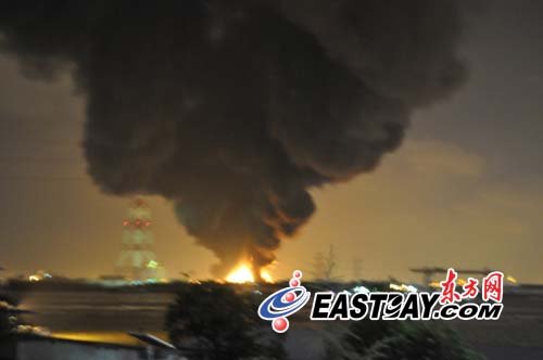 據新民網報道,9月16日,根據網友曝料稱,19時30分左右,浦東新區高橋江東路近三岔港,一石蠟倉庫突發大火,火勢很大。