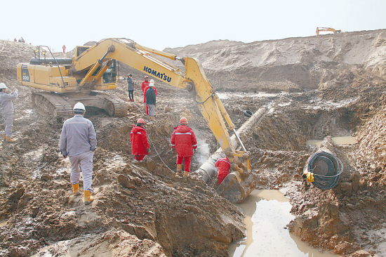 管道三公司黃河穿越基坑連頭作業順利進行
