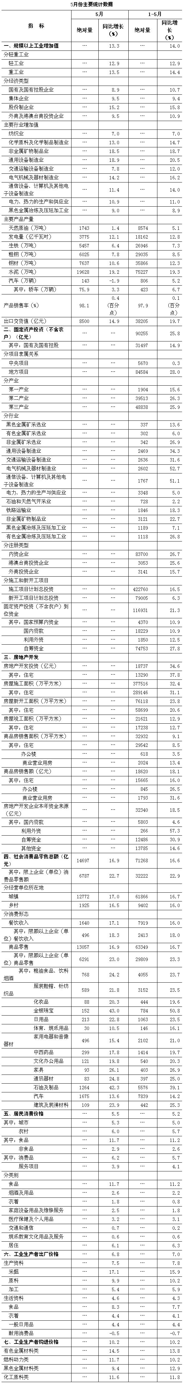 (來源:根據國家統計局5月份國民經濟主要指標數據摘編)