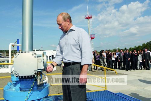 2010年8月29日,俄羅斯遠東阿穆爾州,俄羅斯總理普京出席中俄原油管道俄羅斯境內段的開通儀式,并親手打開輸油閥門