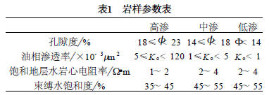 完井測井通常有一段時間間隔, 這一過程中鉆井液侵入剖面的變化無法在現場獲得, 只能得到變化后的結果即電阻率曲線。因此, 本實驗通過模擬鉆井液侵入過程及其最終結果, 達到有助于現場測井解釋的目的。同時, 通過測定侵入前后巖心滲透率的變化, 確定鉆井液對地層的損害程度, 為保護儲層技術及正確評價儲層提供依據。巖樣采集本實驗使用巖心為吐哈油田魯克沁某井區巖樣,根據物性差異可分為高滲、中滲和低滲(見表1)。本實驗分3種情況分別進行實驗分析研究。