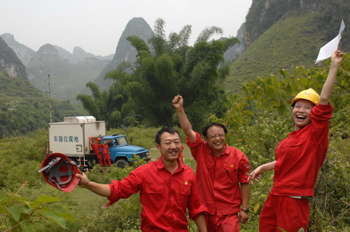 10月21日,艱苦施工7個月的川慶物探公司212隊上千名物探員工的臉上掛滿笑容,因為這天廣西河池頁巖氣二維地震勘探項目資料采集施工告捷。