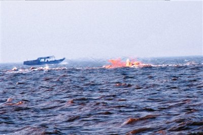 中海油深圳分公司副總經(jīng)理高廣生說,海面上的火焰熄滅后,中海油的專業(yè)環(huán)保作業(yè)船“