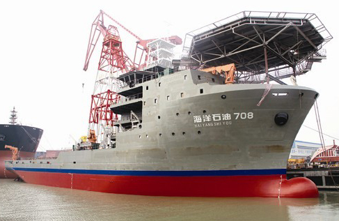 《中國石油報》周一報導稱,中國首艘深水工程勘察船海洋石油708將在南海投入使用。