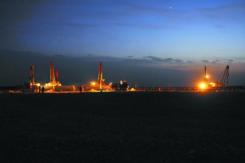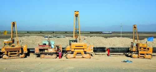 12月6日,新疆吐魯番。在西氣東輸二線勞動競賽中名列前茅的作業機組。