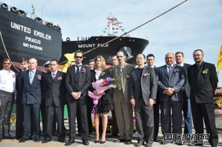 命名儀式由常務副總張玉永主持,劉海金總經理、希臘船東先后致辭。在歡悅的氣氛中,圣母將4#163000噸原油輪命名為“MOUNT FUJI”。隨后,船東一行登上新船,剪彩、祈禱并參觀。公司副總經理陳學亮、于剛出席了命名儀式。