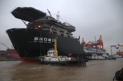 亞洲首艘3000米深水鋪管起重船“海洋石油201”順利出塢