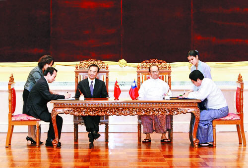 國務院總理溫家寶、緬甸總理登盛出席簽字暨開工儀式