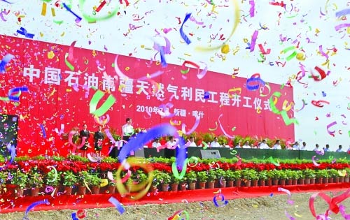 7月14日,中國石油南疆天然氣利民工程在祖國西大門——新疆喀什開工。全部工程計劃2012年建成投產,南疆三地州25個縣市中,將有22個通上管道天然氣,加上以CNG和LPG方式供氣的其余偏遠縣市,南疆所有縣市及21個農牧團場將全部實現氣化。這項工程被新疆維吾爾自治區黨委書記張春賢喻為“新疆富民工程的里程碑”。