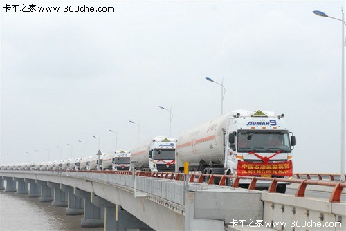 此次中國石油江蘇液化天然氣項目建成投產儀式上,歐曼150臺LNG牽引車在與會領導、嘉賓面前集中亮相、氣勢輝宏,集中展示了福田歐曼的風采,大大提升了福田歐曼的品牌形象。目前到位車輛開始運營,運輸線路以江蘇為中心向華南、華中、山東、華東輻射,屆時歐曼這150臺LNG牽引車將成為一道道亮麗的風景線,同時為歐曼進一步開拓LNG車輛市場將產生重要的促進和傳播效用。