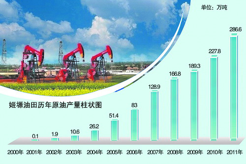 摘要: 圖為姬塬油田遠景 姬塬油田歷年原油產量柱狀圖 站在長慶姬塬油田海拔1860米的地93-91井組向下俯望,井架成林,小站凸立,一派現代化油田的繁盛景象呈現在眼前。   姬塬油...