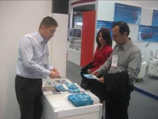 cippe工作人員在展會(huì)現(xiàn)場與國際客商互動(dòng):