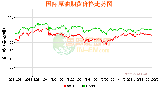 到當天收盤時,紐約商品交易所3月交貨的輕質原油期貨價格下跌1.25美元,收于每桶96.36美元,跌幅為1.28%。但3月交貨的倫敦北海布倫特原油期貨價格上漲59美分,收于每桶112.15美元,漲幅為0.53%。