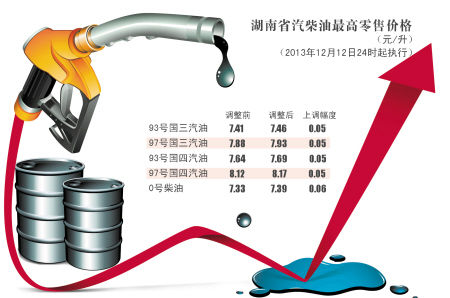 “雙12”來了,油價上漲的消息也再次傳來:昨日,國家發展改革委發出通知,決定將汽、柴油價格每噸均提高60元,測算到零售價格90號汽油和0號柴油(全國平均)每升分別提高0.04元和0.05元,調價執行時間為12月12日24時。湖南各標號汽油和柴油也隨之每升分別上漲0.05元、0.06 元。不過由于此次上漲幅度較小,對CPI走勢、物流企業和私家車油耗影響都不大。
