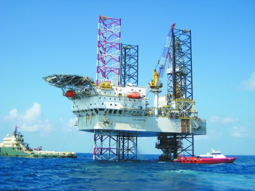 自升式平臺:通常在100m水深左右或以下的區域作業,先拖航到位后,通過升降機構將樁腿往海底里插,最后將平臺升離海面,然后再壓載,等其穩定后。