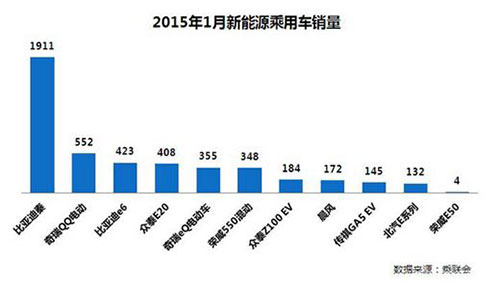 近日,中國(guó)汽車工業(yè)協(xié)會(huì)公布了1月新能源汽車產(chǎn)銷數(shù)據(jù)。2015年1月新能源汽車生產(chǎn)6663輛,銷售6395輛。其中純電動(dòng)汽車產(chǎn)銷分別為3458輛和3106輛,插電式混合動(dòng)力汽車產(chǎn)銷分別為3205輛和3289輛,整體數(shù)據(jù)同比增長(zhǎng)近5倍,但環(huán)比明顯放緩。