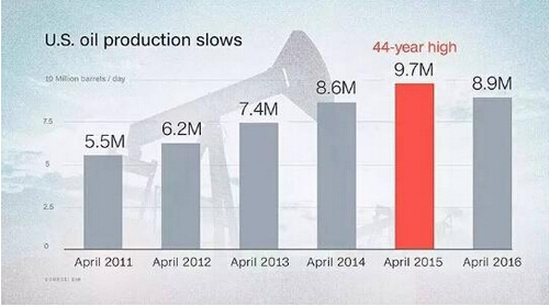 鑒于油價從2014年中期的100美元/桶暴跌至今年2月份26美元/桶,美國理應減少產量。這個價格對于大多數頁巖油田來說太過便宜,而頁巖油是推動美國石油熱盈利的重要部分。