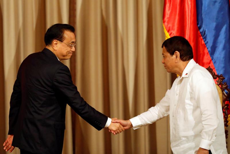 圖:15日,中國(guó)總理李克強(qiáng)在馬尼拉總統(tǒng)府與菲律賓總統(tǒng)杜特爾特會(huì)晤