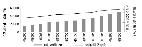 中國原油進口量及對外依存度變化(來源:2018年國內外油氣行業發展報告)
