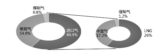2018年中國天然氣供應結構(來源:2018年國內外油氣行業發展報告)