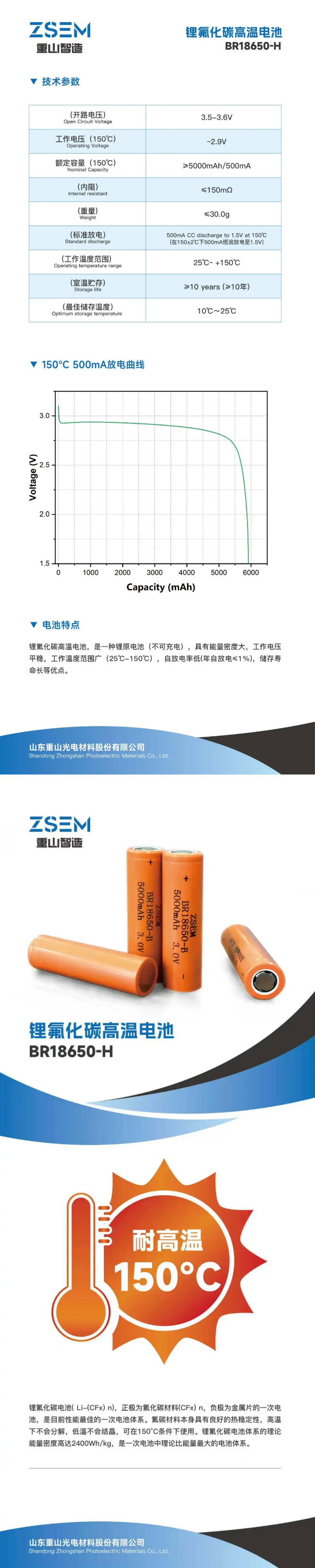 鋰氟化碳高溫電池,是一種鋰原電池(不可充電),具有能量密度大,工作電壓平穩(wěn),工作溫度范圍廣(-40℃-150℃),自放電率低(年自放電≤1%),儲(chǔ)存壽命長等優(yōu)點(diǎn)。